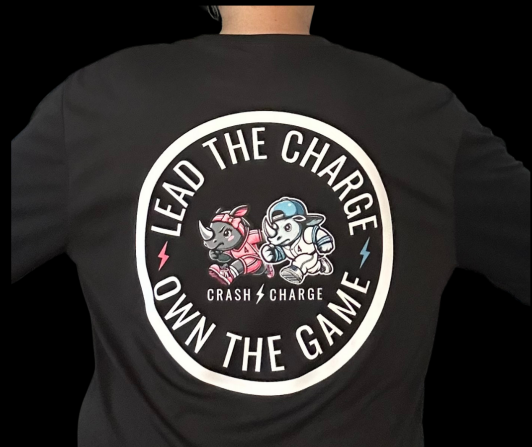 Cooling high-performance LONG SLEEVE features the iconic Crash Charge BOY/GIRL BLACK rhino and the bold mindset: “Lead the Charge. Own the Game.” This lightweight, moisture-wicking tee keeps up with every sprint, swing, and score. Designed for athletes who bring the heat and stay cool under pressure, it delivers all-day comfort and bold energy—on and off the field.