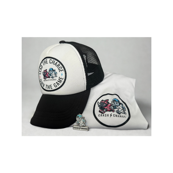 Rep the CRASH like a true member! In this bundle you get to CHOOSE one our rhinos to be on one of our high-performance WHITE tees built for game day, a black trucker hat with the matching rhino logo and our signature CHAMP trading pin — the ultimate badge of the team.